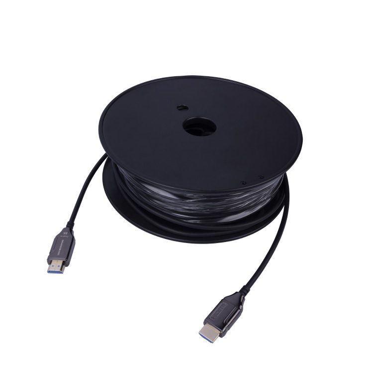 With 24k gold-flash HDMI Connectors, this cable supports resolutions up to 8K@60 Hz(4320p) over an active optical link to extend to longer distances.