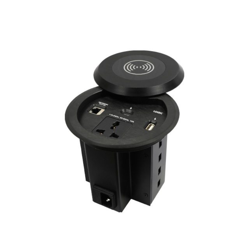 The LG-ITF-305WC is a compact cable management solution that is intended for installation on a table for easy access