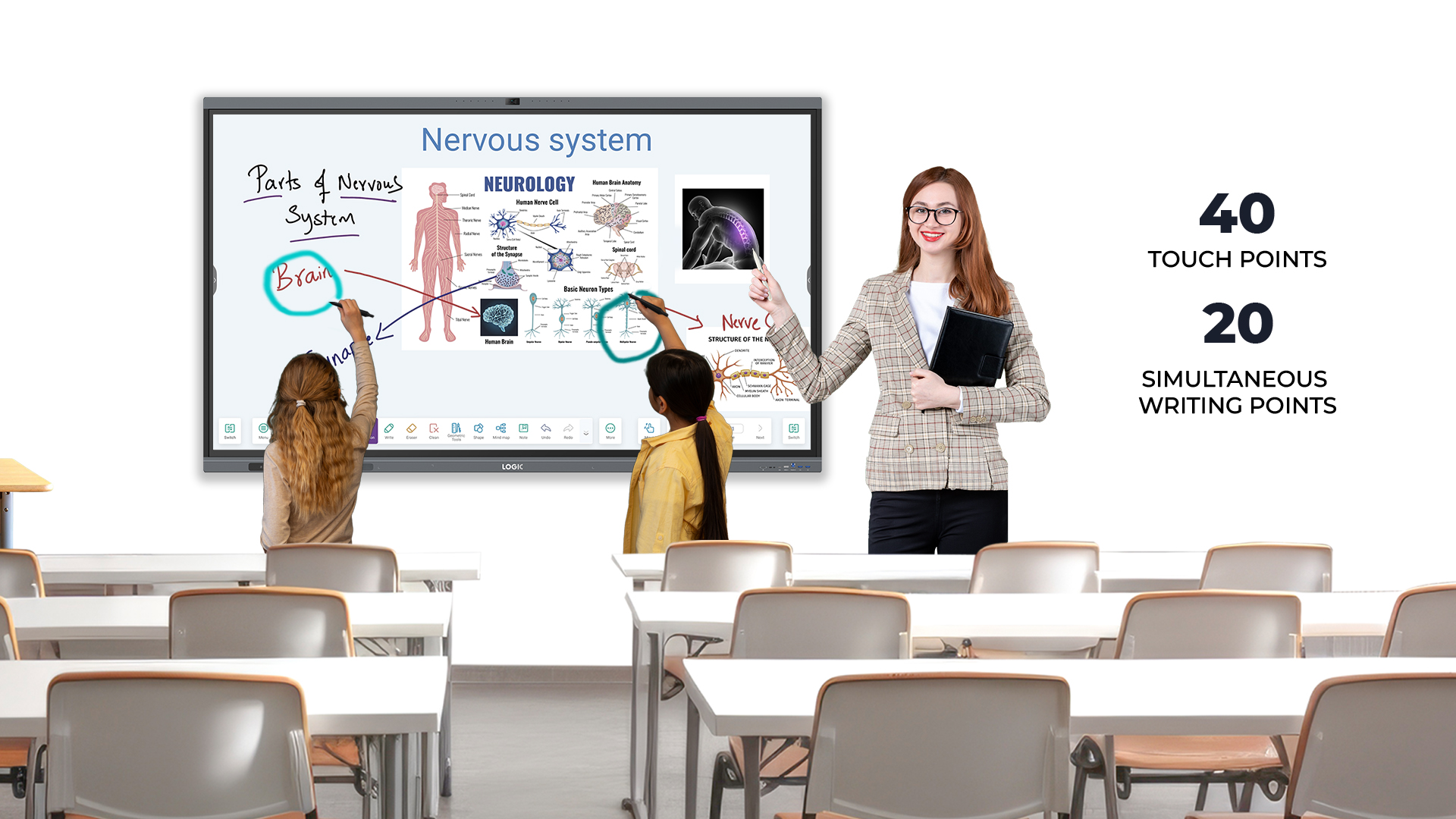 Pair instantly with LOGIC’s cables, floor mount trolleys, and OPS for a complete ecosystem.